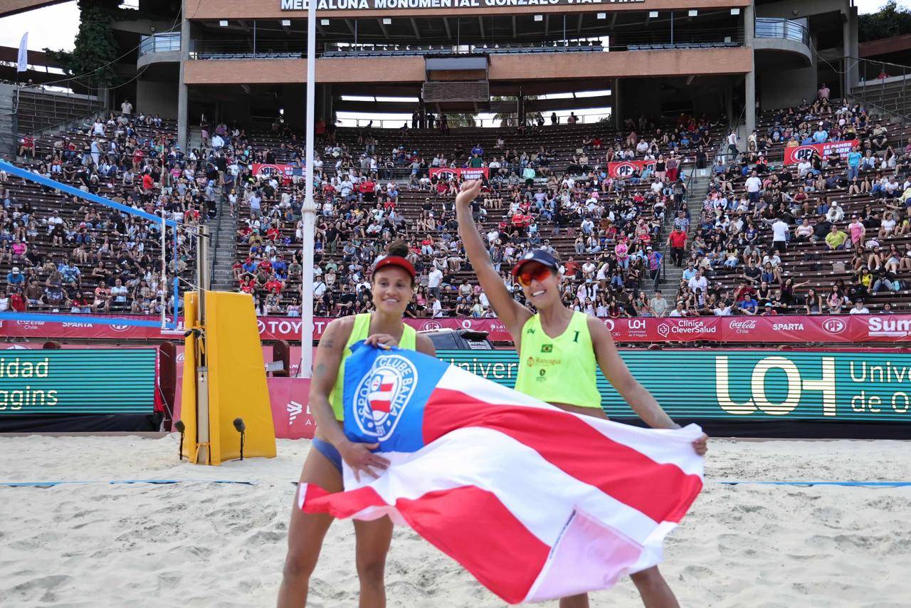 Tem Bahia campeão fora do Brasil! As atletas do Bahia – Associação, Andressa e Tainá, conquistaram o título da etapa do Circuito Sul-Americano de Vôlei de